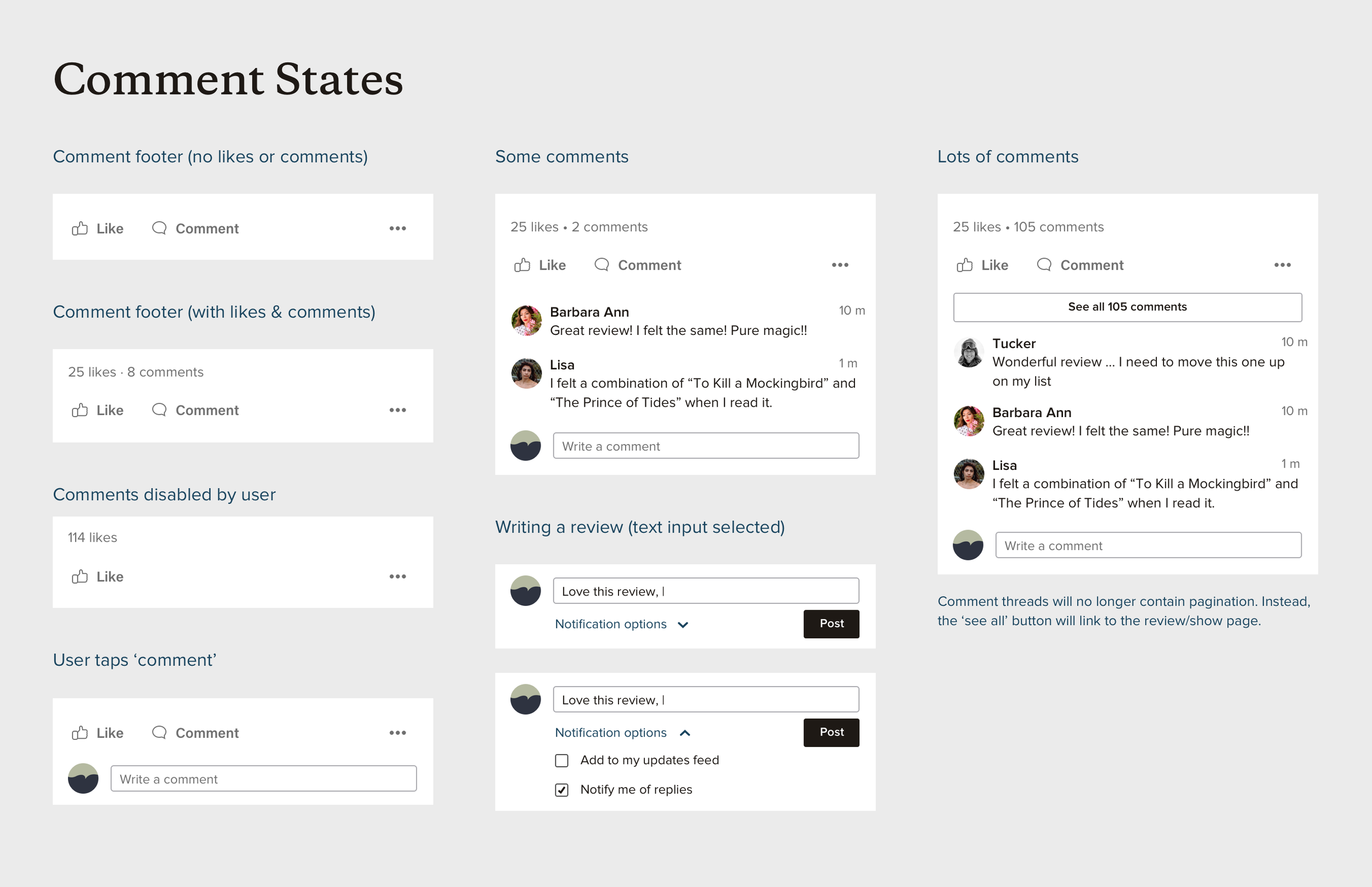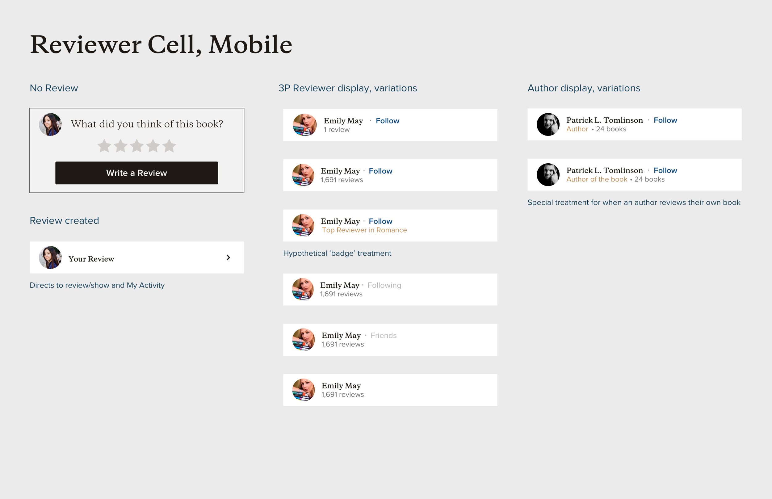 Above: Examples of the various states and edge cases corresponding to a ‘review’ component.